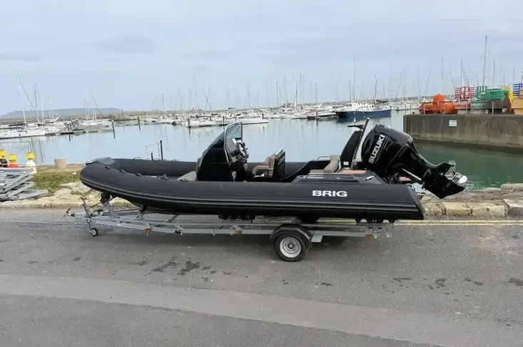 Stored yearly on pontoon system this BRIG Rib also comes with road trailer & overall cover.