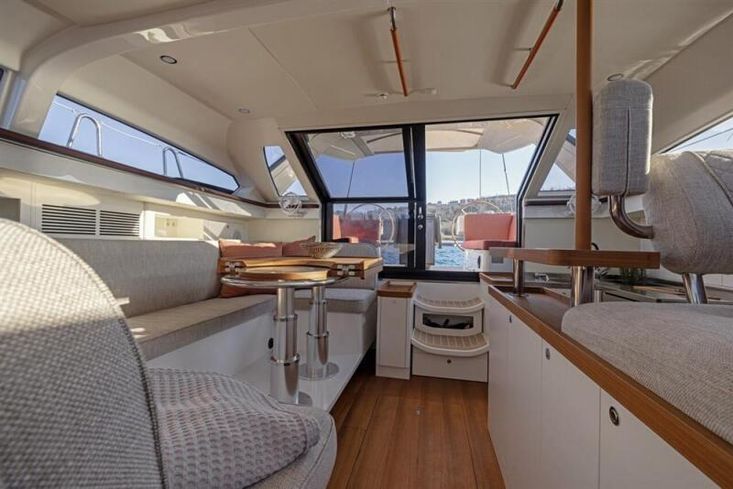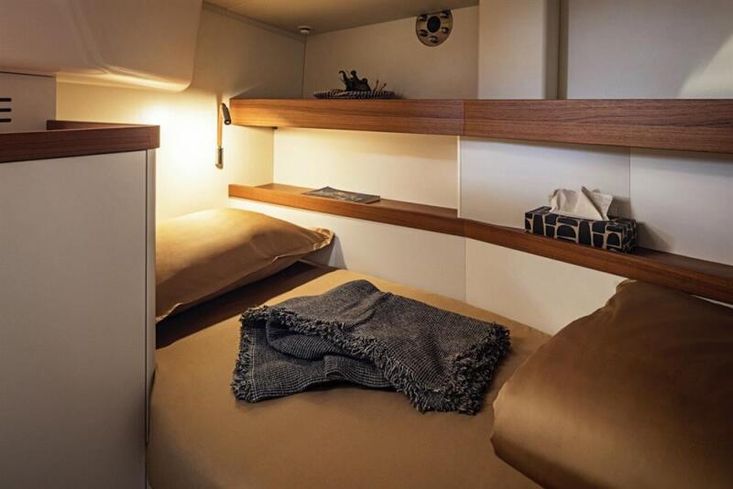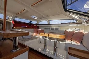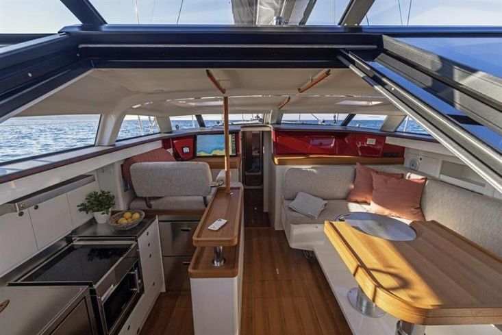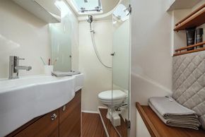 SummaryThe Pegasus 50 is conceived for the discerning cruiser who wants performance as well as comfort. Built in quality materials with careful design and execution of all elements this is an exceptional fast cruiser. This example is Hull 6 and has been used primarily as a demo model for boatshows and sea trials. In excellent condition and ready for a new owner. Detailed handover and opportunity for continued support included in the deal. CONSTRUCTIONPegasus 50 built in 2023 by Pegasus Yachts in Slovenia. German flag CONSTRUCTION: Epoxy Vinylester resins with carbon and glass fibre laminates in hull. Sandwich construction with PVC core.Crash box under anchor lockerMetallic red hull colour in PU paint with clear coat finish Esthec Synthetic Teak in cockpit and on side decks and folding swim platformFolding swim platform Tandem keel with lead bulb Dual wheel steering with cardan system to twin balanced rudders2 x Carbonautica three-spoke wheelsMECHANICALSOne Volvo D2-75, 75hp diesel engine Saildrive to 3 bladed GORI folding propeller Sleipner SLR130 retractable 8.7hp Bowthruster ELECTRICS: 12 V DC / 220 V AC Victron LiFePo4 400A service batteries 1 x engine battery Engine alternator Victron 5Kw Combi Battery charger/inverterWhisper Power M-GV5 Piccolo 3.5 Kw generatorSolar Panels – 720W 24VHydrogenerator: Watt and Sea POD600 Shore power with auto switchover between shore/ship/generator TANKAGE: 1 x 480L fuel tank 2 x water tanks with a total capacity of 740L 2 x 50L holding tanks WATER SYSTEM: Pressurised freshwater water systemPressurised seawater tap in galley 40L Water heater – engine and 220V Schenker 50L/hr WatermakerRIG9/10 Fractional Sloop rigLorima Deck stepped carbon mastSparcraft aluminium boom R390 with lazybag racks – black lacqueredRod rigging Fully battened mainsail with Antal sliders Continuous line Genoa furlingRemovable inner forestay for self-tacking jib with continuous line furlingCarbon bowsprit with continuous line furlingMainsheet track on solid arch to keep lines out of cockpit SAILS: Mainsail – Triradial Hydranet, fully battened Genoa - Triradial HydranetSelf tacking jib – Hydranet - on removable inner forestayGennaker WINCHES: 4 x Harken 2ST 60.2 Electric winchesINTERIORFive berths in three cabinsOwners double cabin to starboard amidships with ensuite head with electric toilet, handbasin and showerGuest cabin double V-berth forward in bow Single berth cabin to port amidships Second head to port for guest cabins with electric toilet, handbasin and showerSalon seating and table are gimballed allowing them to self-level when sailingSalon table electrically adjustable. Lowers to make large lounging space Cooker with 4 ring Induction hob and combi Oven and microwave 130L front opening Fridge110L fridge and freezer drawers51L drawer coolbox in cockpit table Double galley sink16,000BTU Reverse cycle airconditioning Webasto Air Top Evo 55Washing machine – Mini 3kg Beige textile upholstery Teak or oak wood combined with matte white lacquered surfaces. Accents in synthetic leather and carbon-look surfacesINVENTORYNAVIGATION AIDS: 2 x Steering compasses 4 x B&G Triton under cockpit hardtop giving echosounder, speed, wind and log Simrad AP44 autopilot controls at helm and nav station and two Ram T2 linear actuators B&G chart plotters:27” touchscreen at chart table for navigation and entertainment2 x B&G Zeus3S MFD at helm stationsB&G Halo 20+ radarB&G VHFAIS transceiver GROUND TACKLE: Ultra 27kg stainless main anchor with 100 m of 8mm stainless chain Quick DP3 vertical Electric anchor windlass with remote in cockpit GENERAL EQUIPMENT:Convertible hardtop over cockpitFixed windscreen Deckshower H/CBathing ladderIntegrated passarelle – acts as stern bench when stowed 3 x manual fire extinguishers3 x automatic fire extinguishers 1 electric, 1 manual bilge pumpSmoke and CO alarms 6 x lifejacketsLiferaft for 6 pax 2.7m DinghyTorqeedo electric outboard for dinghyGarage at stern for dinghy stowage 8 x fenders Various warps BoathookTV through B&G screen at nav stationFusion radio and player with speakers in cockpit and salonCutlery, crockery, utensils